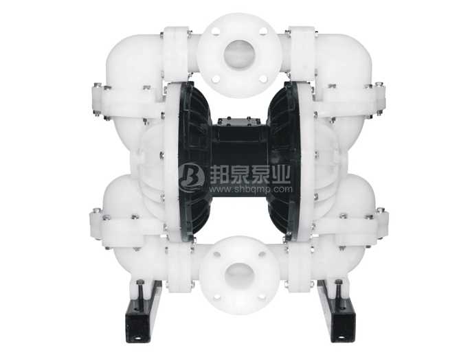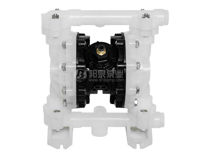 工程塑料氣動隔膜泵采用壓縮空氣為動力源,過流部件材質采用工程塑料PP材質,隔膜材質選配:四氟,丁腈橡膠,氟橡膠等。